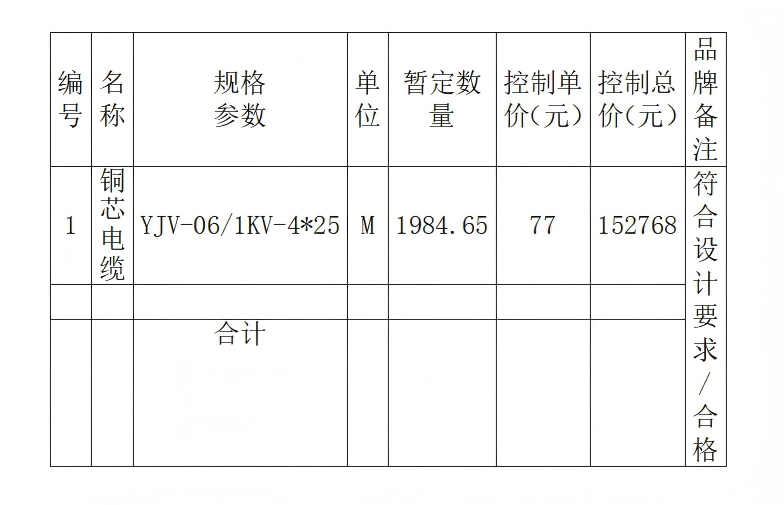 (銅芯電纜)報價(邀請)函